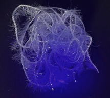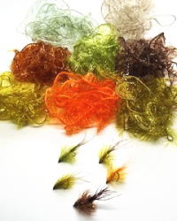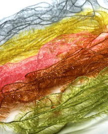 このグルグル系シンセティックマテリアルは、光沢のある人工ファーがその光沢によりアピール性を高め、このマテリアルでフライを巻けば魅力的なシルエットを造りだします。また、紫外線により蛍光しますので、より効果的なアピールを発せられます。